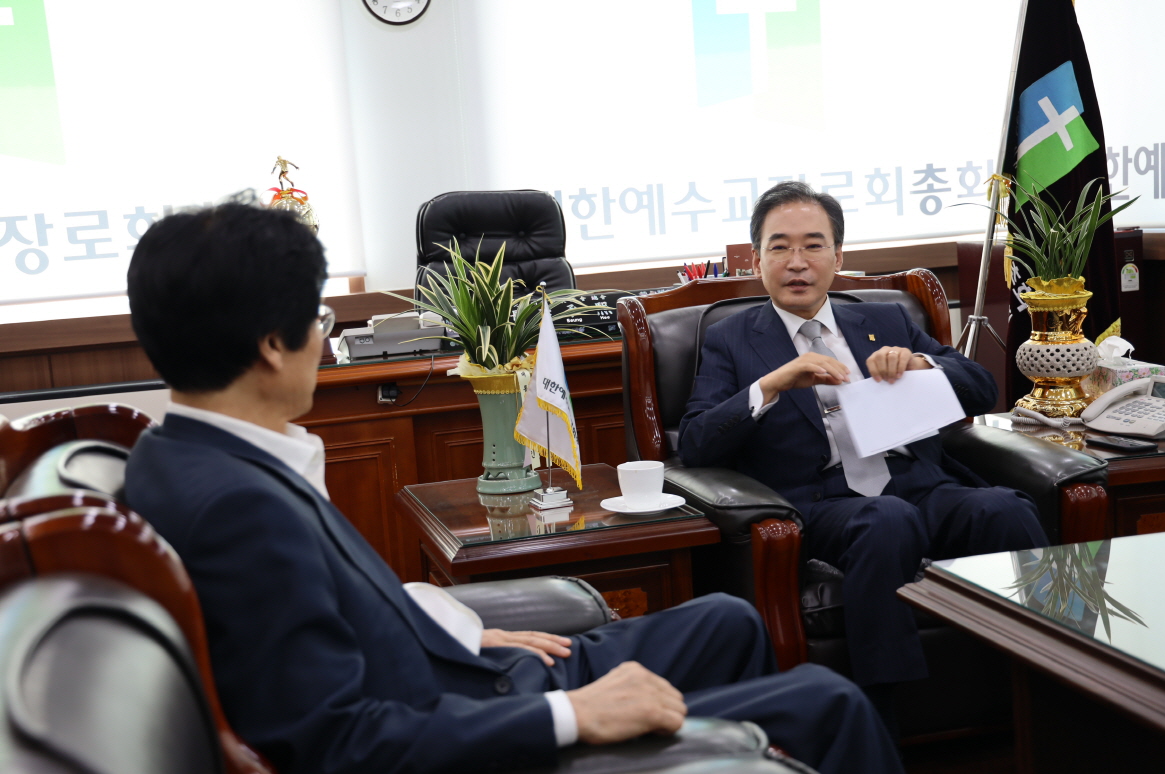 총신대학교 정용덕 재단이사장이 8월 1일(목) 오전 10시 총회회관을 방문, 총회장 이승희 목사를 예방하고 교단과 총신대학교와의 관계 회복과 정상화에 적극 나섰다.
