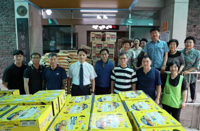 “심곡동주민센터로 라면 100박스 배달 나갑니다” 부천삼락교회 LOVE米(사랑의 쌀) 나누기 현장을 찾았다. 현장은 가을 추석을 앞둔 부천삼락교회 김신웅 목사와 복지위원장 조택형 장로 그리고 박인규 장로와 섬김이들의 손길이 바빴다. 잠시 후 김신웅 목사는 배달을 마치고 교회로 돌아왔다. 부천삼락교회가 봉사를 맡은 곳은 심곡동과 원미동이다. LOVE米(사랑의 쌀) 나누기는 11개 팀으로 조직되어 지역의 장애인센터, 청소년센터, 수입 없이 정부 지원으로 생활하는 가정 그리고 지원이 필요한 교회 성도들의 집으로 일일이 배달했다. 배달은 교회 승합차 아니면 개인 승용차를 이용했다. 이 나눔 비용은 전액 성도들의 자발적인 LOVE米 헌금으로 마련했다. 교회 재정은 단 한 푼도 사용하지 않고 전적으로 성도들의 헌신이기에 아주 즐거운 나눔을 가졌다.