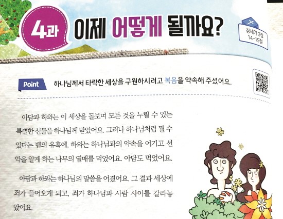 아담과 하와가 선악과를 범하자 이 세상에는 죄와 저주, 수고와 고통 그리고 죽음이 찾아왔어요. 그러나 하나님은 여자의 후손을 약속하셨어요.