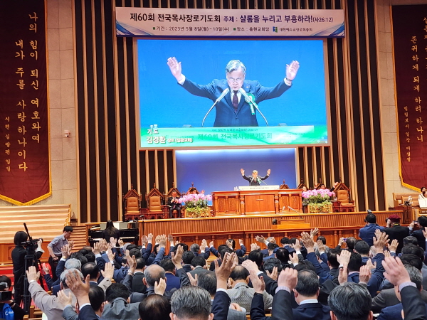 “샬롬을 누리고 부흥하라” 제60회 전국목사장로기도회가 2,000여 명이 참석한 가운데 5월 8일부터 10일까지 서울 충현교회(한규삼 목사)에서 있었다. 한국교회와 예장합동이 그 험난했던 코로나팬더믹을 이겨내고 다시 충현교회에서 열아홉 번째 기도회를 갖고 샬롬부흥의 주인공으로 다시 회복되기를 간구했다.