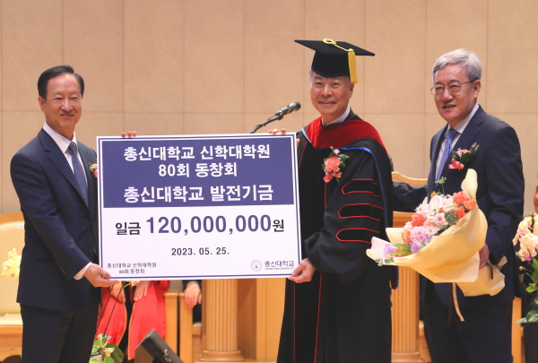 한편 총신대학교신학대학원 제80회 동창회 회장 이종석 목사가 학교발전기금 1억 2천만 원을 전달했다. 이는 총장 박성규 목사와 부총회장 오정호 목사가 제80회 동기이다. 때문에 제80회 동기들이 십사일반 힘을 합쳐 발전기금을 전달해 총장 축하에 힘을 보탰다. 또 부총회장 오정호 목사도 새로남교회 당회원들에게 총신대학교를 위해 크게 한 번 쏘자고 제안했다고 밝혔다. 앞으로 이러한 후원행렬을 계속될 전망으로 보인다.