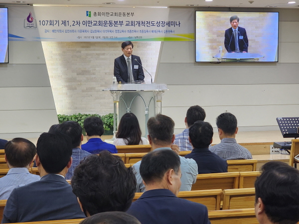 총회이만교회운동본부(본부장 배만석 목사) 제1차 교회개척전도성장세미나가 미래자립교회 목회자 60여 명이 등록한 가운데 6월 1일 오전 11시부터 오후 5시 30분까지 서울 남현교회(윤영배 목사)에서 있었다. 총회이만교회운동본부는 이번에 등록한 60여 명 미래자립교회 목회자들은 제2차 세미나에도 참석해야 한다. 이 중에서 40여 명을 선정해 미래자립교회 개척 후원금을 전달할 예정이다.