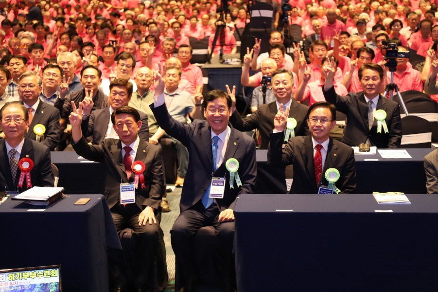 먼저 회장 정채혁 장로는 대회사에서 “제52회기 하기부부수련회는 하나님의 은혜였기에 가능했다. 특히 호남중부지역에서 1,100명의 참여해서 감사드린다. 영남지역과 서울서북에서도 각각 800명이 참석했다. 등록하지 않은 분까지 합치면 3,000명 가까이 등록했다. 이런 결과는 증경회장들과 각 지역과 로컬의 회장들이 기도하고 협력해 준 덕분이다. 이번 수련회는 농번기를 피하고 특강을 줄이고 은혜의 시간을 늘렸다. 피곤한 육신을 위해서 쉼터도 마련했다. 하나님의 전신갑주를 입고 다시 하나님께 돌아가는 은혜가 있기를 바란다”라고 밝혔다.