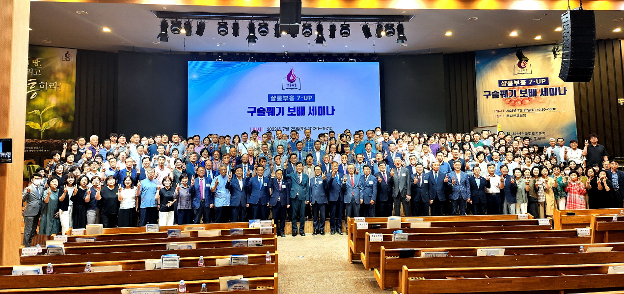 「샬롬부흥 7-UP 구슬 꿰기 보배 세미나」가 휴가철임에도 불구하고 전국에서 400명 가까이 참석한 가운데 7월 25일 10시 30분부터 6시 10분까지 경기도 동탄 주다산교회(권순웅 목사)에서 갖고 제107회 총회샬롬부흥운동의 막바지 훈련에 들어가며 샬롬부흥의 열매를 기대했다.