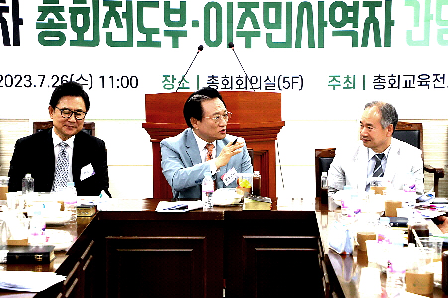 총회전도부(부장 오범열 목사 제7차 이주민사역자 간담회가 7월 26일 오전 11시 총회회관에서 개최되어 아가페이주민선교회, 오식도기쁨나눔교회, 김제 연정다문화교회, 전주 갈렙교회, 꽃동산캄보디아교회, 글로벌비전교회 선교담당자들이 나와 선교 상황을 보고했다. 대부분 주된 선교 전략은 이주민 유학생 선교 사역이다.
