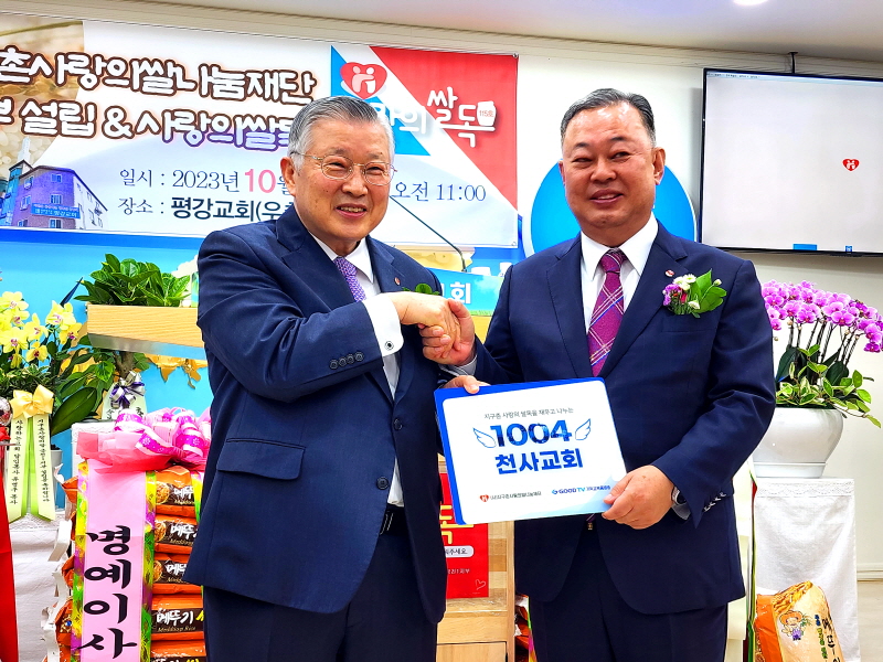 “365일 마르지 않는 사랑의 쌀독. 필요한 분은 가져가시고 넉넉한 분은 채워주세요” (사)지구촌사랑의쌀나눔재단 금천1지부 설립 & 사랑의쌀독 발대식이 10월 26일 오전 11시 서울 평강교회(우충희 목사)에서 열고 하나님의 사랑을 나누는 전초기지가 되기를 소망했다. 특히 금천1지부는 (사)지구촌사랑의쌀나눔재단의 115번째 지부로서 다른 지부와는 달리 목사와 장로들이 많이 참여한 것이 특징이다.