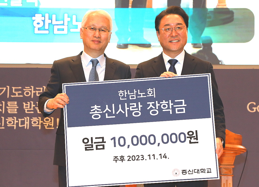 예장합동 한남노회(노회장 이형린 목사)가 11월 14일 총신대학교 양지캠퍼스에서 총신대학교신학대학원 원우들과 함께 하는“총신사랑 노회의 날”을 열고 감사예배를 드리고 장학금 1,000만 원을 전달하고, 양지캠프서 전 원들에게 점심식사를 제공하고, 20명의 목사후보생들에게 도서비를 제공하고 격려했다.