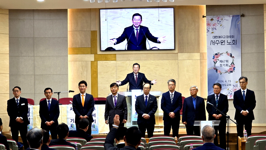 서수원노회 제67회 정기회가 목사 회원 59명, 장로 총대 29명이 참석한 가운데 4월 15일 오전 9시 수원성도교회(김민호 목사)에서 개최되어 임원과 총대를 선출하고 회무를 처리했다.