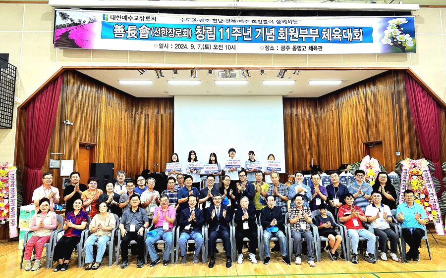 선한장로회, 선장회(회장 김정호 장로 ‧ 사무총장 양희정 장로) 창립11주년기념 회원 단합체육대회(준비위원장 이윤남 장로)가 9월 7일 오전 10시 전남 광주 동명고등학교(교장 이명석 시무집사) 체육관에서 거행하고 동명고등학교 학생들에게 장학금을 전달했다. 그리고 체육대회 종목은 배구와 족구였다. 그러나 앞으로 모든 회원들이 참여할 수 있는 윷놀이도 포함시켜야 한다는 숙제를 남겼다.
