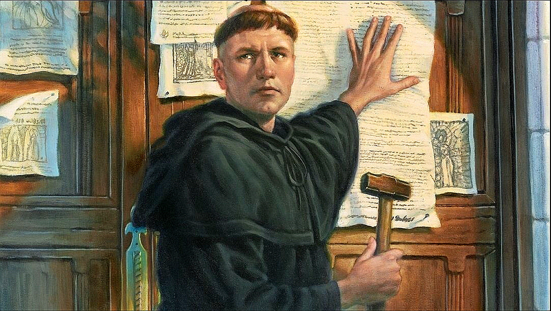 루터가 95개 논제를 비텐베르크 성 교회 문에 붙이는 장면