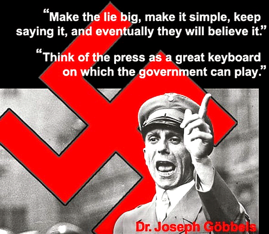 “대중은 거짓말을 처음에는 부정하고 그 다음엔 의심하지만 되풀이하면 결국에는 믿게 된다.”