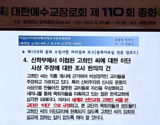‘이단 김현두와 고희인’에 대한 이단 판정은, 오직 대한예수교장로회 제110회 총회 결의만 남았다.