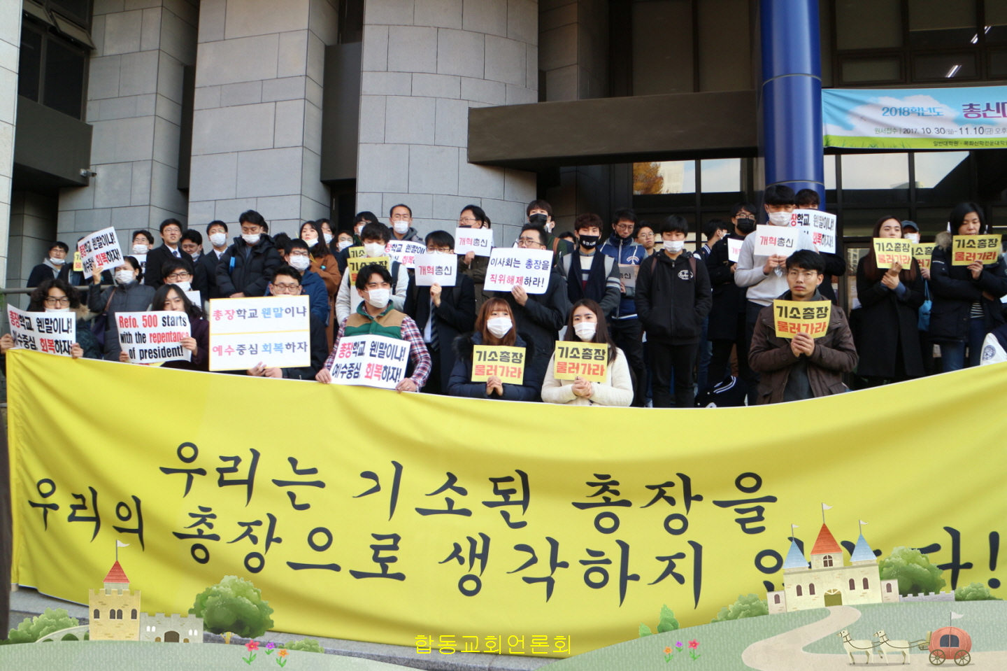 이제 주인이 보내는 마지막 아들, 운영이사회를 보냈다. 그러나 그대들은 그 아들을 포도원 밖으로 끌어내고 짓밟았다. 그대들 스스로 사학법의 자식들이 되어, 주인의 아들을 죽이는구나. 전에 주인의 풍성한 포도원이었던 총신대학교가 어찌하여 그대들로 인해 창기와 같이 더러워졌으며, 살인 터가 되었는고.
