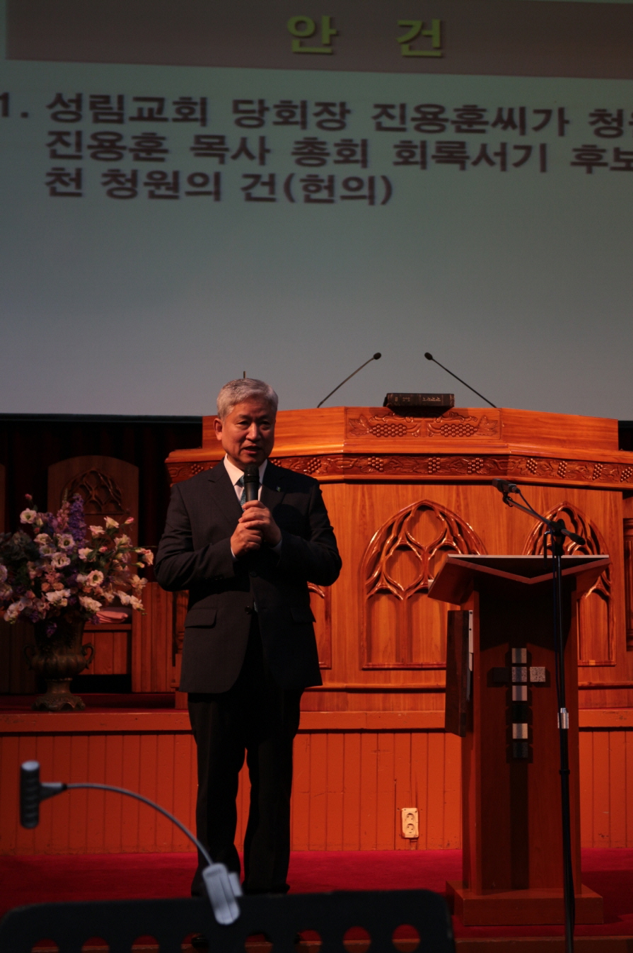 한편 성림교회 진용훈 목사는 서울강남노회 대남교회 이호영 장로(제99회 총회 부총회장)가 제100회 선거관리위원회 부위원장을 섬기고 있어서 부서기 출마를 포기한 적이 있었다. 때문에 진용훈 목사는 서울강남노회 노회원은 물론 특히 장로들에게 사랑과 존경을 받고 있다.