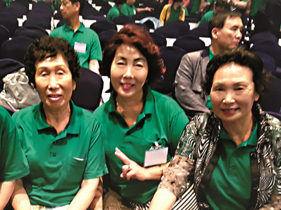 앞자리에 앉는 분들은 대체적으로 강의를 경청하며 은혜에 몰입하는 분들이다. 기자의 바로 뒷 자리에서 수련회 기간 내내 강사의 말씀마다 아멘!으로 화답하는 권사님 한분을 만났다. 찬양 때는 유명 성악가를 빰칠 정도의 미성을 들려준 전남 광양시 진상면에 있는 진상교회의 김효순 권사(59)다. 찬양하는 게 그렇게 좋을 수 없다며 교회 찬양대원과 초등부 교사로 30여년을 봉사하고 있다. 옆자리에는 같은 교회의 김금자 권사와 이옥순 권사도 이에 뒤질세라 열정적으로 맞장구를 쳤다. 올해로 5년째 장로회수련회에 참석했다. 부군은 운송사업을 윤석도 장로이다. 윤 장로는 교회에서 선교부장을 맡고 있는데 금년에는 사업상 참석을 하지 못했다고 한다.