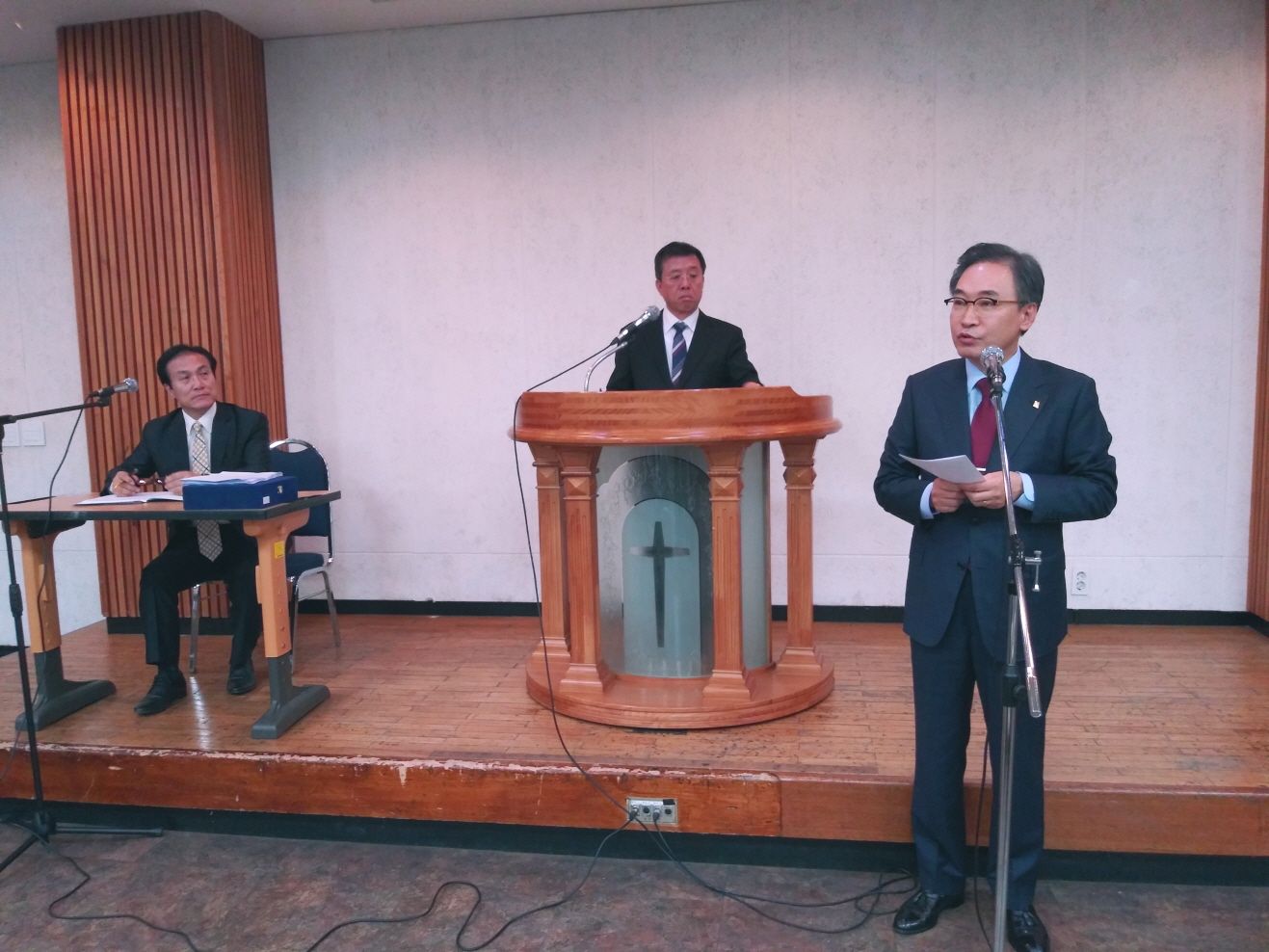 총회장 이승희 목사는 제1부 예배 설교를 맡았다(밤에 옥문을 열고 이르되, 행5:17-23). 그리고 회의를 시작하면서 현재 학교 상황을 비교적 자세하게 설명했다. 총회장은 “재단이사장과의 대화에서 빨리 학교를 정상화시켜서 돌려주겠다는 의지를 보았다. 재단이사회가 총신대학교 점령군이 아니라 도움을 주기 위해서 교육부의 파송을 받았다는 것을 분명히 이해해달라는 호소를 들었다. 이제 문제는 총신대학교 법인국 재정이 바닥난 상태에서 앞으로 징계 받을 교수들이 법정 소송에 나설 것인데, 이를 대비할 비용이 필요하다. 또 교육부 대학인증평가 항목에 반드시 재단전입금이 있어야 한다. 그동안 재단이사들은 있었지만 재단이사전입금은 없었다. 재단전입금은 전체 예산의 0.04%로 약 3억 5천만 원이다. 그리고 최근 연세대학교로 인해 시간강사법이 제정됐는데, 시간강사들에게도 4대 보험을 들어주어야 한다. 때문에 학교는 매년 총 5억 원이 필요하다”고 설명했다.
