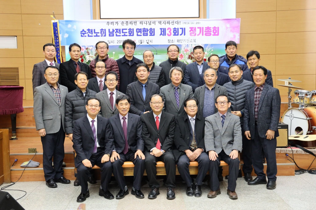 순천노회남전도회 제3회 정기총회가 1월 12일(토) 오후 5시 태인제일교회(최성수 목사)에서 갖고 회장 조현수 장로(태인제일), 수석부회장 이창휴 장로(광양중동), 총무 유봉환 장로(광양읍), 서기 임대영 장로(광양광진), 회의록서기 임진국 장로(순천지본), 회계 임홍주 장로(순천만대대) 그리고 감사 신중호 장로() 송하정 장로()를 선출하고 새롭게 출발했다.